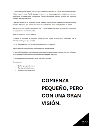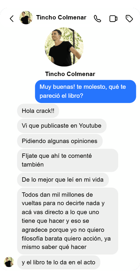 Por eso, decido terminar el libro con un plan de acción completo, donde combino todo lo anterior en un solo lugar, paso a paso, para que no te pierdas ni te confundas. Literalmente te digo “Paso 1, hacé esto….”, “Paso 2, hacé esto otro….” y así sucesivamente.